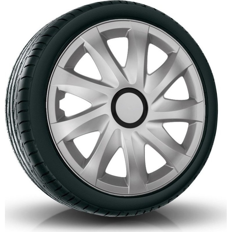 Komplet wysokiej jakości kołpaków wykonanych z tworzywa odpornego na uderzenia i warunki atmosferyczne. Kołpaki pasują do felg stalowych większości modeli samochodów (nie pasują jedynie do felg wypukłych).