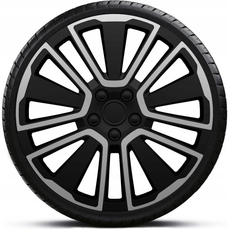 Elegancki czarno-srebrny design kołpaków NARDO