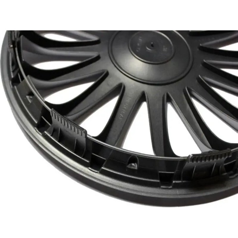 Kołpaki wyposażone są w wyprofilowane zatrzaski, które zapewniają stabilny montaż, utrzymując je na miejscu nawet w trudnych warunkach drogowych, co zwiększa bezpieczeństwo użytkowania.