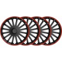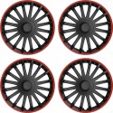 Nowoczesny czarny kolor kołpaków nadaje samochodowi sportowy wygląd, przyciągając spojrzenia przechodniów. Ich wyprofilowane zatrzaski zapewniają stabilne mocowanie, eliminując ryzyko przypadkowego odpadnięcia podczas jazdy.