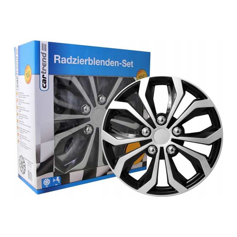Wysokiej jakości niezwykle prezycyjne dopracowane na wysoki połysk w kolorze czarnym / srebrnym. Regulowana metalowa obręcz zapewnia optymalnie uniwersalne montowanie oraz stabilność. Kołpaki zostały podwójne lakierowanie dzięki czemu wyróżniają się wspaniałą błyszcząca powłoką wierzchnią.