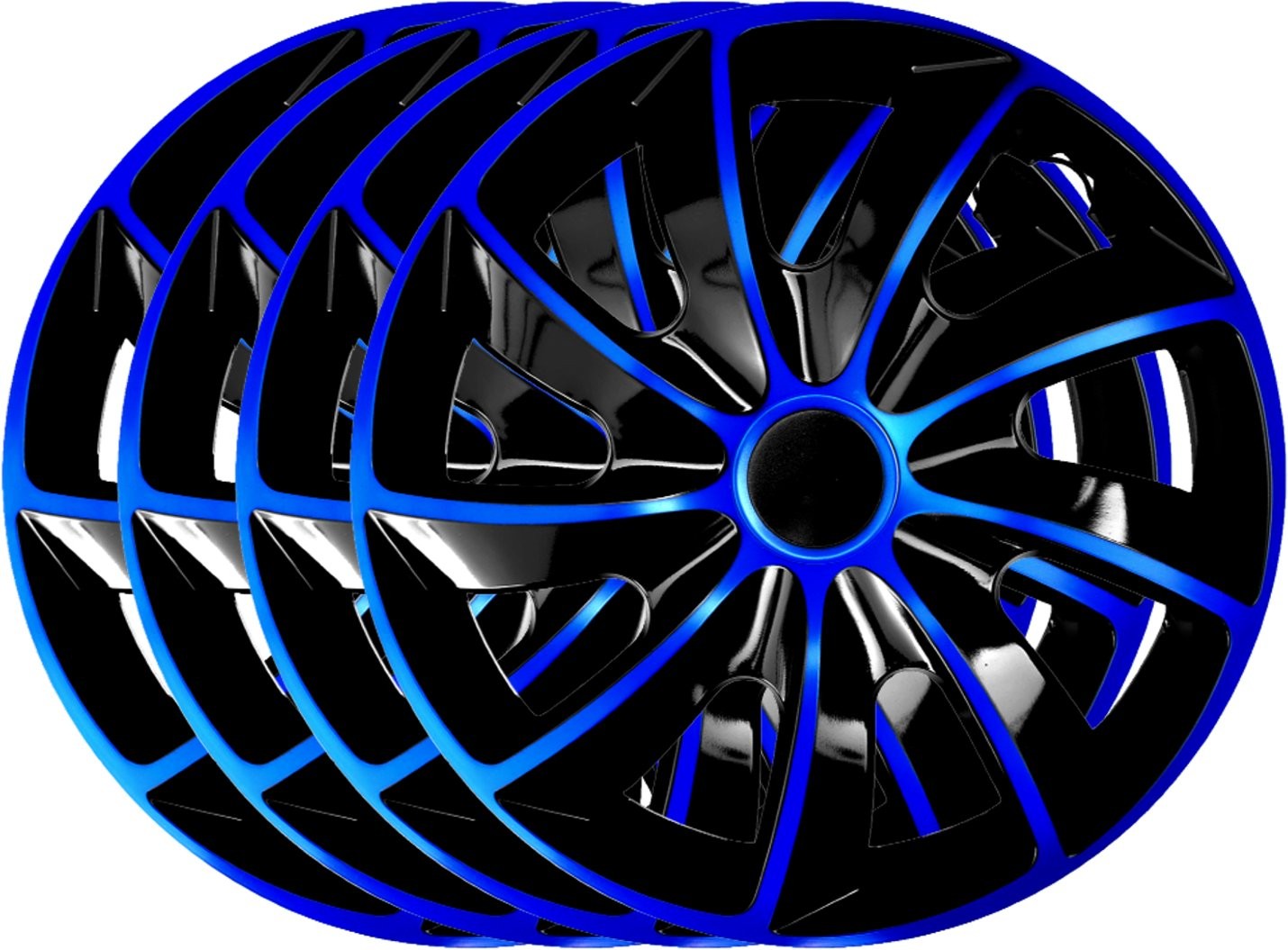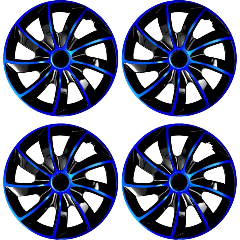 Komplet kołpaków uniwersalnych Quad Bicolor niebiesko-czarne 15 cali – Idealne dla Twojego samochodu