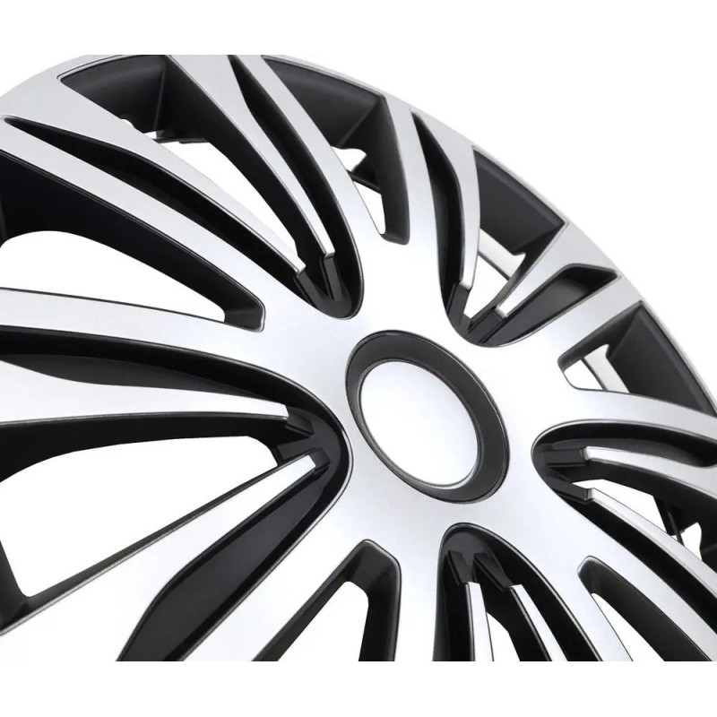 Komplet czterech uniwersalnych kołpaków samochodowych NARDO CZARNO SREBRNE o średnicy 14 cali to świetny wybór dla kierowców, którzy chcą nadać swojemu pojazdowi nowy, atrakcyjny wygląd. Te nowoczesne kołpaki doskonale pasują do wielu modeli aut, dodając im elegancji i wyjątkowego charakteru.