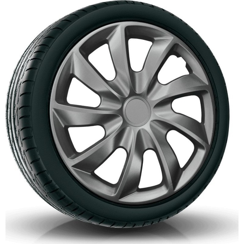 Kołpaki wykonane są w całości z odpornego na uderzenia plastiku, co zapewnia długą żywotność i trwałość.