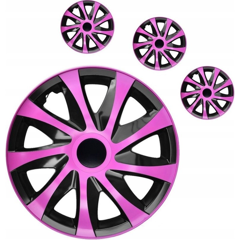 Kołpaki DRACO w kolorze różowo-czarnym to świetny wybór dla tych, którzy chcą połączyć estetykę z funkcjonalnością. Zestaw czterech uniwersalnych kołpaków o średnicy 15 cali pasuje do wielu modeli, takich jak Renault, Peugeot, VW, Opel, Ford, Citroen, Hyundai, Toyota i Nissan. Dzięki nim nie tylko odmienisz wygląd swojego pojazdu, ale także skutecznie zabezpieczysz felgi przed uszkodzeniami i zanieczyszczeniami.