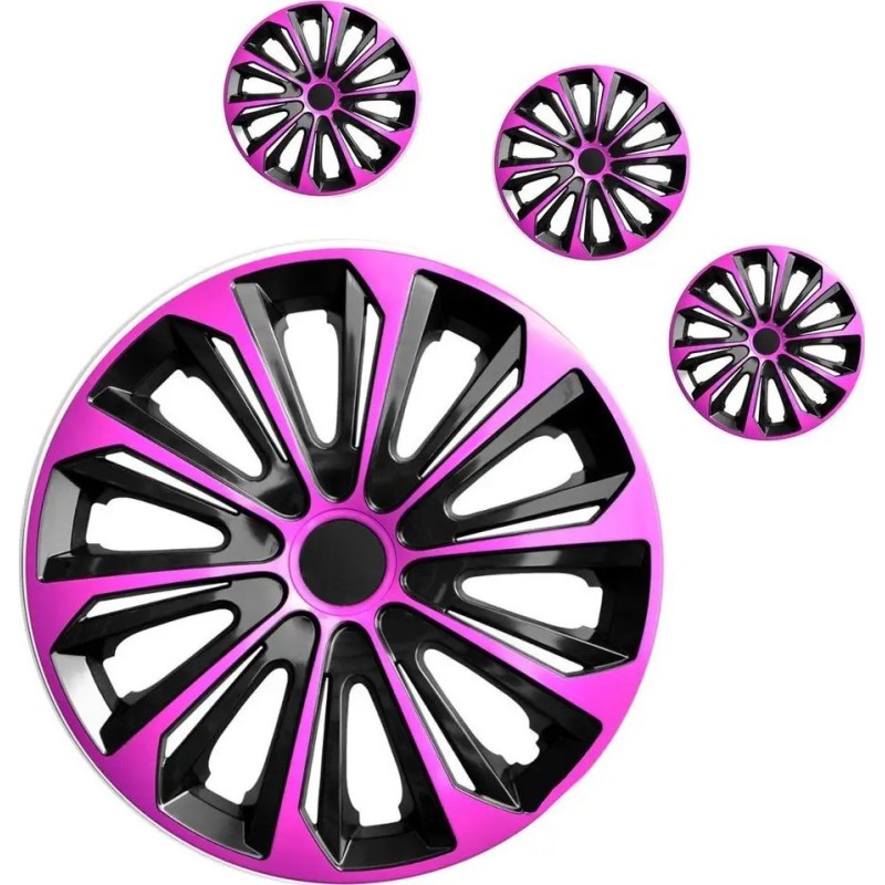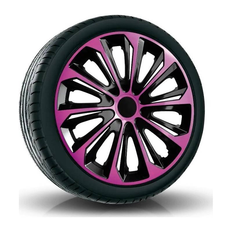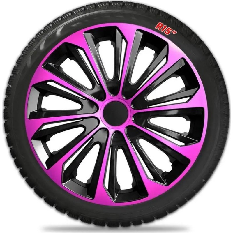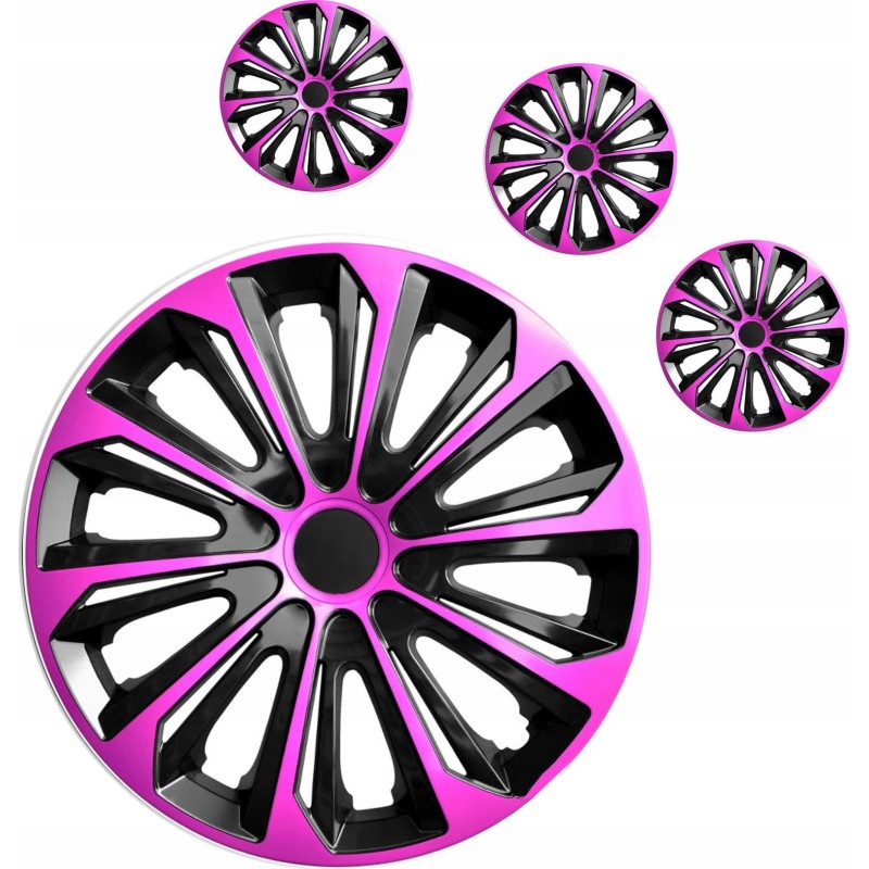 Różowo-czarny design kołpaków dodaje elegancji i charakteru Twojemu samochodowi. Dzięki nim Twój pojazd z pewnością przyciągnie wzrok na drodze, a jednocześnie zyska na wartości wizualnej.