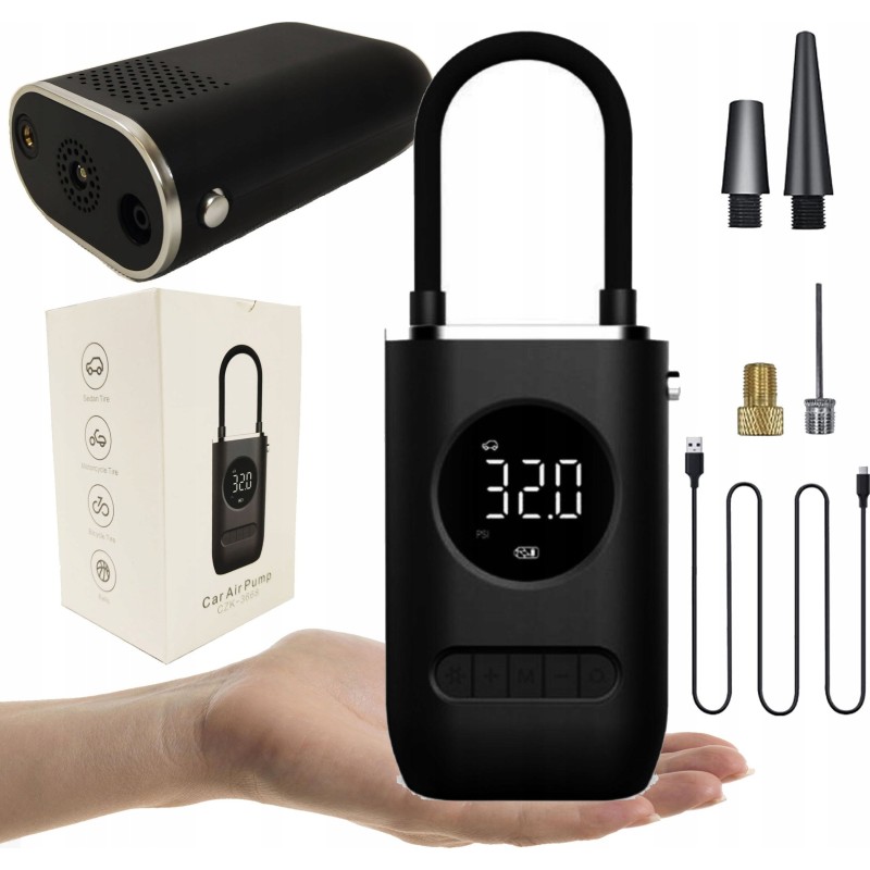 Akumulator można ładować za pomocą kabla USB Typ-C. Pompa można podłączyć bezpośrednio do ładowarki, komputera lub powerbanka. Podczas ładowania diody migały, a po pełnym naładowaniu wszystkie diody świecą. Pompować można również podczas ładowania.