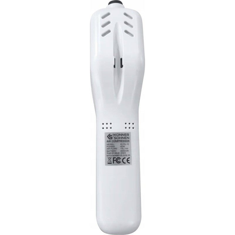 Samochodowy kompresor powietrzny KS PCL-10 z funkcją powerbanku od Könner & Söhnen® to niezastąpiony przyjaciel nie tylko dla kierowców samochodów, motocyklistów i rowerzystów, ale także idealny do pompowania pneumatycznych kół wózków dziecięcych, sprzętu ogrodowego lub budowlanego. Jest niezastąpiony dla właścicieli sprzętu sportowego, nadmuchiwanych zabawek, kamizelek i innych nadmuchiwanych przedmiotów. Pompowanie odbywa się przy użyciu akumulatora, dlatego nie trzeba podłączać kompresora do źródła zasilania (sieci elektrycznej lub samochodowego akumulatora), a cały proces trwa tylko kilka minut. Kompresor KS PCL-10 może pompować z prędkością 15 litrów na minutę.