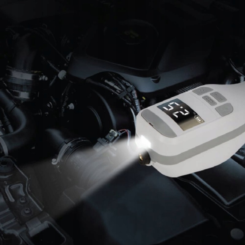 Wbudowana jasna latarka LED na obudowie służy do oświetlania obszaru pracy w ciemności lub przy słabym oświetleniu. Posiada trzy tryby pracy: oświetlenie, miganie i tryb SOS. Specjalny tryb migający może zapobiegać wypadkom, gdy dojdzie do uszkodzenia koła lub innej sytuacji awaryjnej w nocy. Tryb SOS: 3 krótkie i 3 długie błyski sygnalizują prośbę o pomoc.