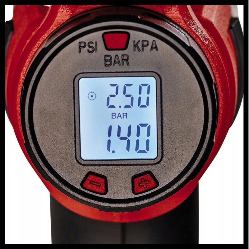 Urządzenie posiada specjalny cyfrowy wyświetlacz, który umożliwia sprawdzenie aktualnego ciśnienia roboczego oraz wcześniej ustawionego ciśnienia w zakresie 0-11 barów. Możliwość wyboru jednostki ciśnienia: bar, psi lub kpa.