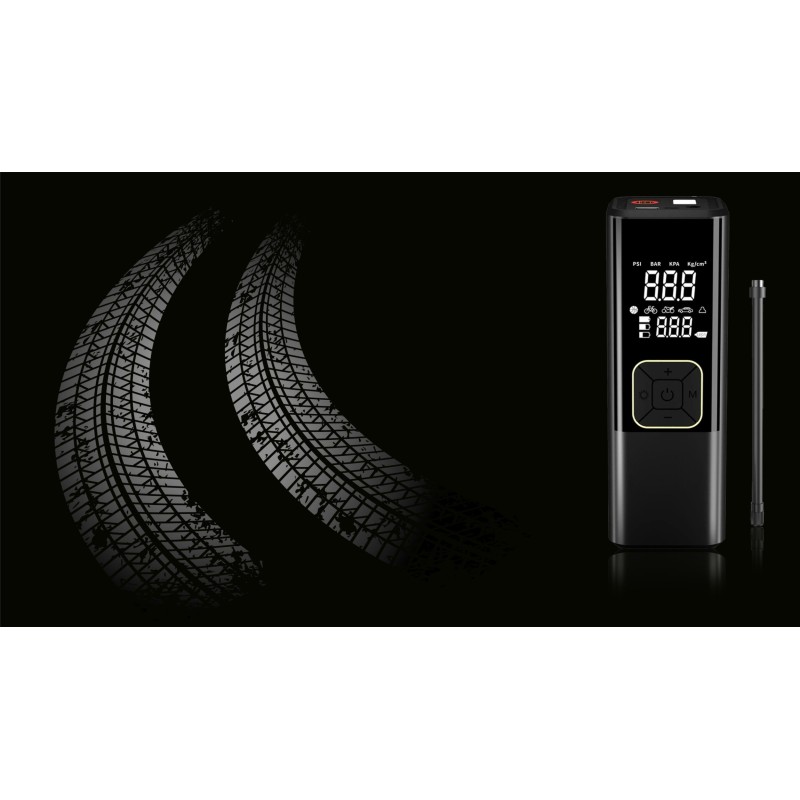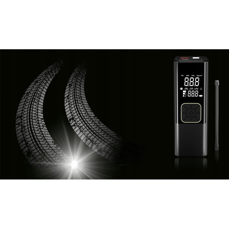 Duży wyświetlacz LCD dostarcza informacji o aktualnym ciśnieniu, stanie baterii oraz wybranym trybie pracy (samochód, rower, piłka). Obsługa pompki jest niezwykle prosta dzięki pięciu przyciskom, które umożliwiają łatwe ustawienie ciśnienia oraz zmianę jednostki miary.