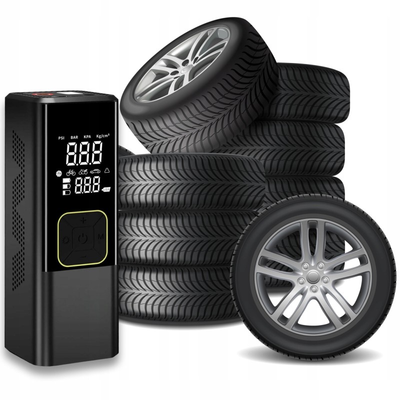 - W zestawie: kompresor, kabel do ładowania, zestaw końcówek
