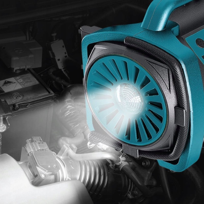 Wbudowana jasna latarka na obudowie przyda się, gdy trzeba oświetlić obszar pracy w ciemności lub przy słabym oświetleniu. Posiada tryb ciągłego świecenia oraz tryb migania