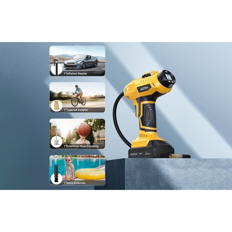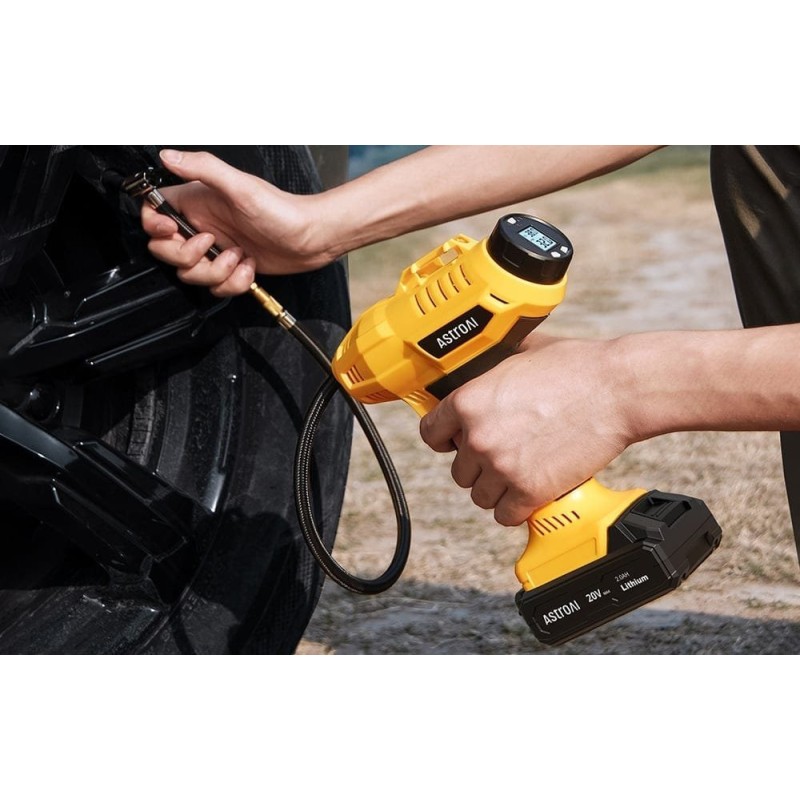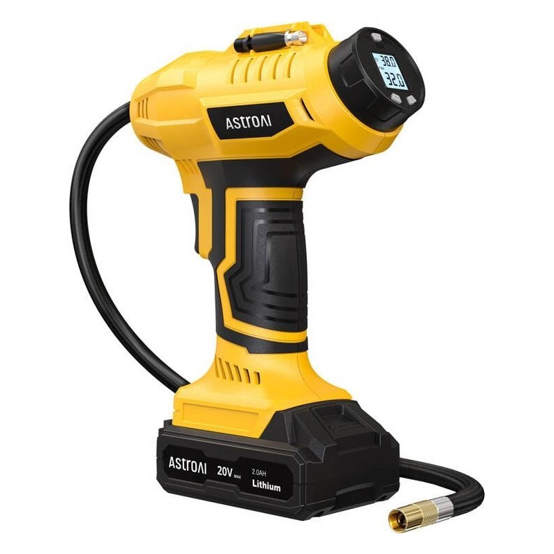 Urządzenie AstroAI wyposażono w wydajny akumulator o pojemności 2,0 Ah, pozwalający na maksymalnie 20 minut ciągłej pracy – jest to wystarczająco długo, aby napompować oponę samochodową około 4 razy, oponę motocyklową około 14 razy, oponę rowerową około 17 razy lub piłkę do koszykówki około 87 razy. Pompka naładuje się w ciągu godziny, a wskaźniki LED informują o jej stanie.