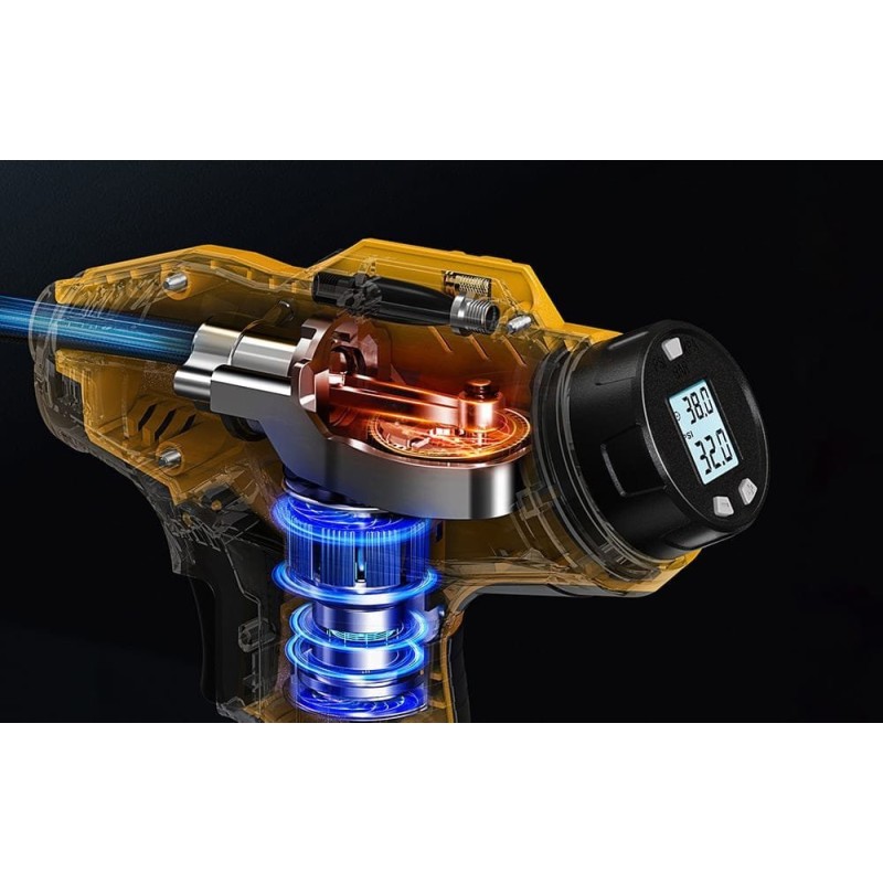 Możliwość całkowitego napompowania opony (0-36 PSI) w ciągu 4 minut pozwala zaoszczędzić czas. Wzmocniona konstrukcja i wysokiej jakości materiały zapewniają długą żywotność urządzenia.