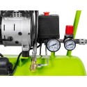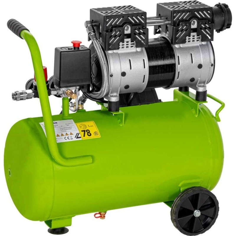 Zipper ZI-COM24SI. Wydajność: 126 l/min, Maksymalne ciśnienie: 8 bar, Pojemność zbiornika powietrza: 24 l. Kolor produktu: Czarny, Jasnozielony, Liczba kół: 2 szt.. Moc silnika: 750 W, Źródło zasilania: Prąd przemienny, Napięcie wejściowe AC: 230 V. Szerokość produktu: 530 mm, Głębokość produktu: 310 mm, Wysokość produktu: 535 mm