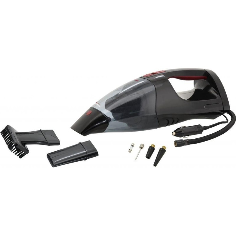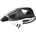 Odkurzacz wyposażony jest w długi przewód zasilający z wtyczką do gniazda zapalniczki samochodowej 12V, jest mocny i bardzo praktyczny. Idealny do czyszczenia samochodu z drobnych zanieczyszczeń. Opakowanie zawiera wąskie mocowanie do odkurzania mniej dostępnych obszarów oraz dyszę ze szczotką do brudnych powierzchni. Odkurzacz jest bezworkowy i nadaje się zarówno do odkurzania na sucho, jak i na mokro. Kompresor nadaje się do pompowania opon samochodowych, motocyklowych lub rowerowych. W zestawie znajdują się dodatkowe adaptery do różnych zastosowań (pompowanie piłek, materace, baseny itp.). Sprężarka jest wyposażona we wbudowany miernik opon, który wyświetla zmierzone ciśnienie w kilku różnych jednostkach. Wbudowana latarka 5 x LED (3x biała, 2x czerwona), odpowiednia do oświetlenia miejsca pracy. Dane techniczne: zasilanie: 12 V. latarka: 5 x LED długość kabla: 280 cm Moc sprężarki: 100 W (maks. 8,5 Amp) maksymalne ciśnienie sprężarki: 7 kg / cm2; 100 PSI Przemieszczenie sprężarki: 30 l / min moc próżni: 96 W (maks. 8 Amp) rodzaj próżni: suchy, mokry Zawartość opakowania: 1 x odkurzacz ręczny w połączeniu ze sprężarką powietrza