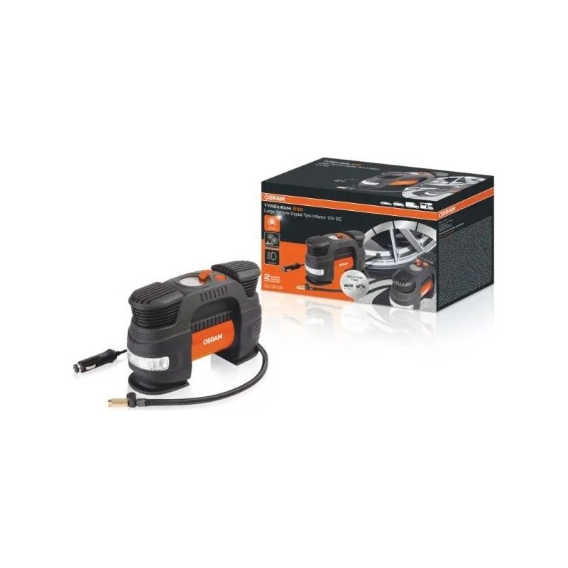 OSRAM TYREinflate 830 został specjalnie opracowany do użytku z większymi pojazdami i ich oponami, dzięki czemu idealnie nadaje się do samochodów, przyczep kempingowych, kamperów, pojazdów terenowych, minibusów i furgonetek. Ta pompka do opon może napompować oponę 13" w ok. 2 minuty, a oponę 22" w ok. 5 minut.
