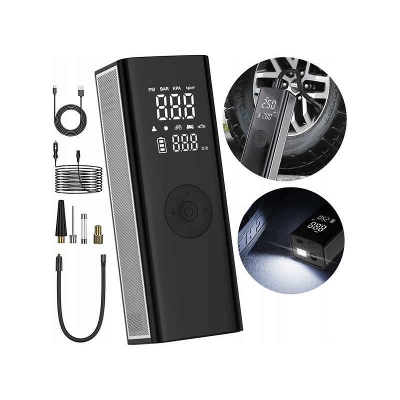 KOMPRESOR Sprężarka SAMOCHODOWY POMPKA Powerbank 7800mAh 120W 35l/min 10bar