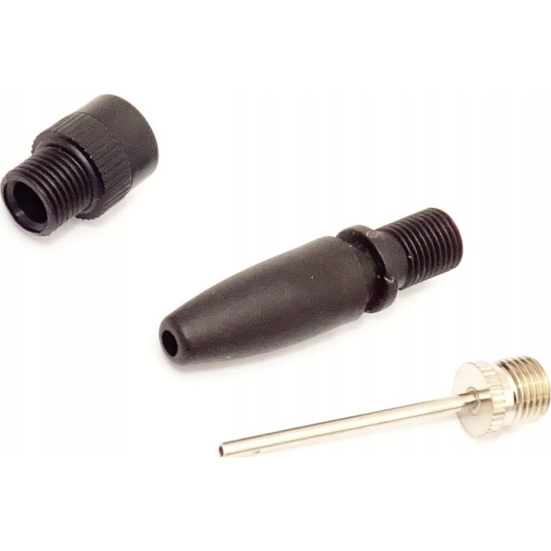 Dostarczany z końcówkami: Igła długa, zawór Presta, uchwyt Schrader, dysza z zaciskiem