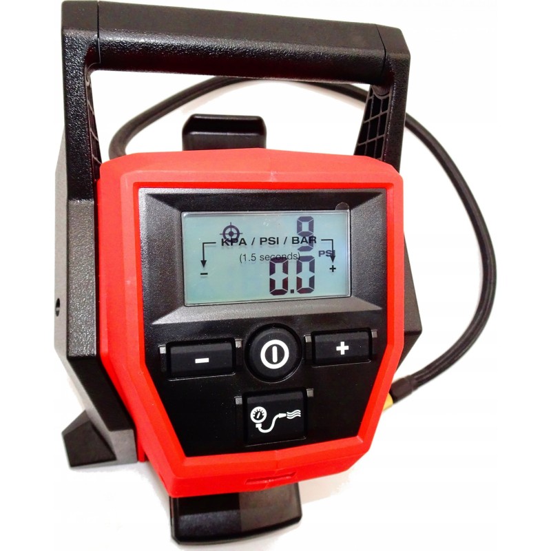 Wyświetlacz LCD z cyfrowym wskaźnikiem ciśnienia oraz informacją o naładowaniu i gotowością do pracy