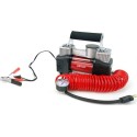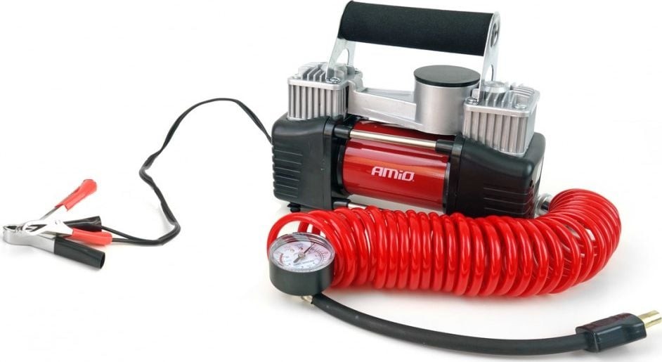 Mocny, metalowy kompresor dwu tłokowy z manometrem. Kompresor przeznaczony jest w do pompowania kół, piłek, pontonów, basenów i innych, dzięki trzem różnym końcówkom do wentyli w zestawie. Daje sobie radę z dużymi kołami samochodów 4x4 - SUV - Van - Truck - Camping Kompresor zasilany jest przez gniazdo zapalniczki samochodowej lub bezpośrednio z akumulatora dzięki odpowiedniej przejściówce.