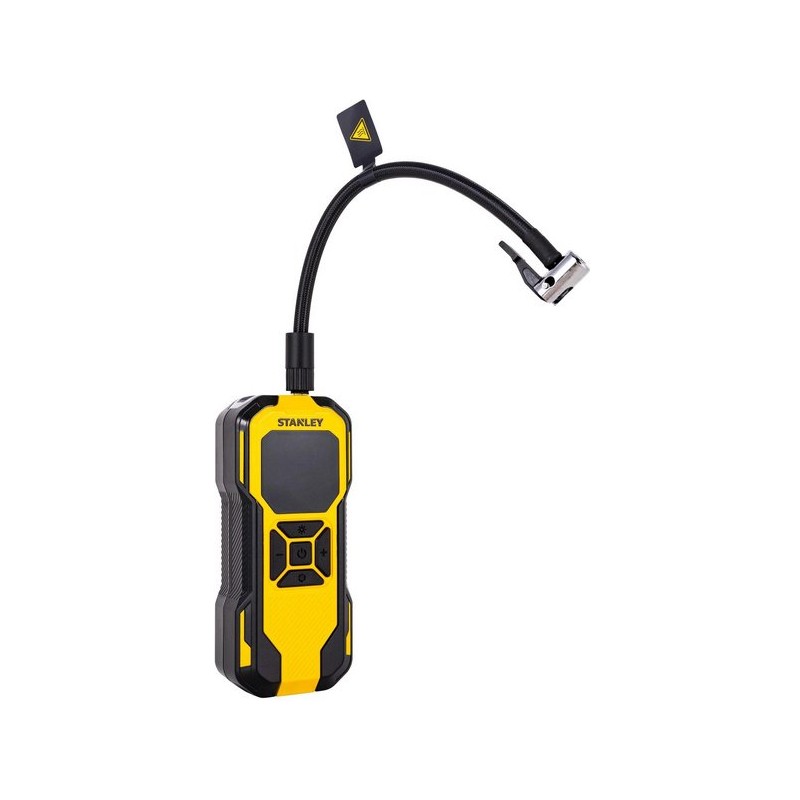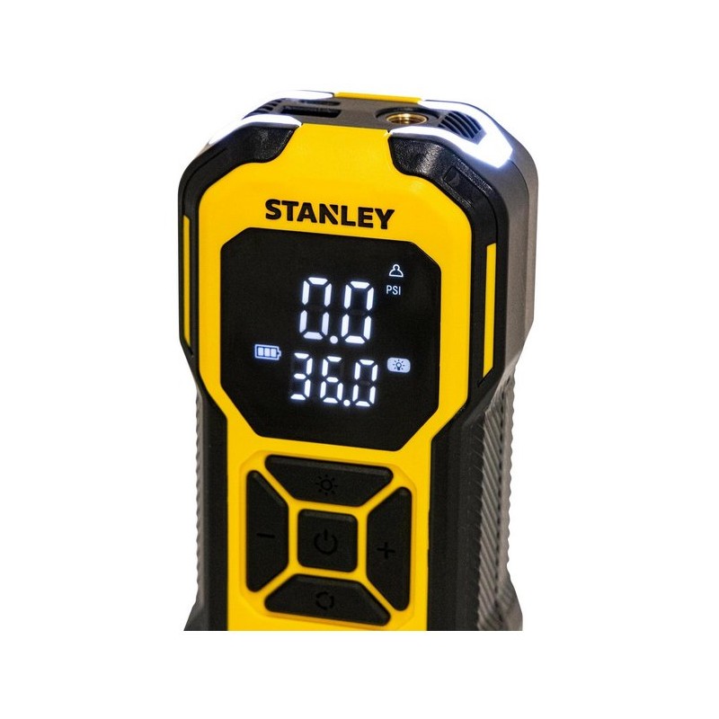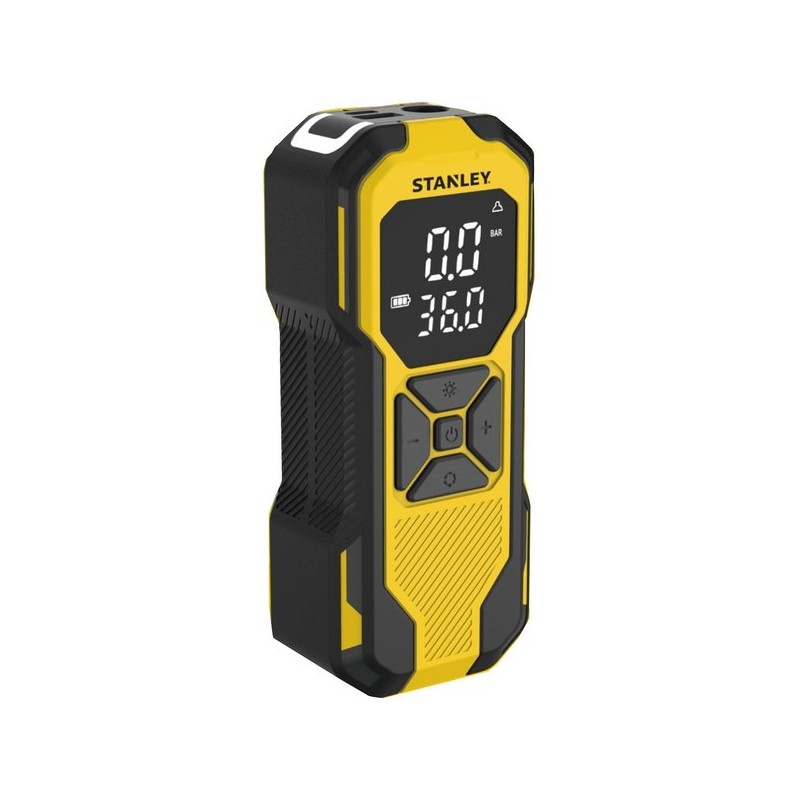 Kompresor akumulatorowy STANLEY SXIF0101 to przenośne urządzenie wyposażone w akumulator Li-Ion, które może pełnić również funkcję powerbanku. Działa zarówno z przewodem, jak i bezprzewodowo. Posiada wyświetlacz pokazujący aktualne ciśnienie i inne parametry, a także porty USB, schowek na akcesoria i wbudowaną diodę LED. Maksymalne ciśnienie, jakie zapewnia, to 10 bar. Może być zasilany przez gniazdo zapalniczki 12 V oraz port USB-C (kabel dołączony). Obsługa jest łatwa dzięki dobrze rozmieszczonym przyciskom, a funkcja automatycznego wyłączania umożliwia ustawienie pożądanego ciśnienia PSI i kontynuowanie pracy, podczas gdy cyfrowy wskaźnik ułatwia odczyt parametrów.