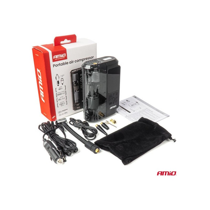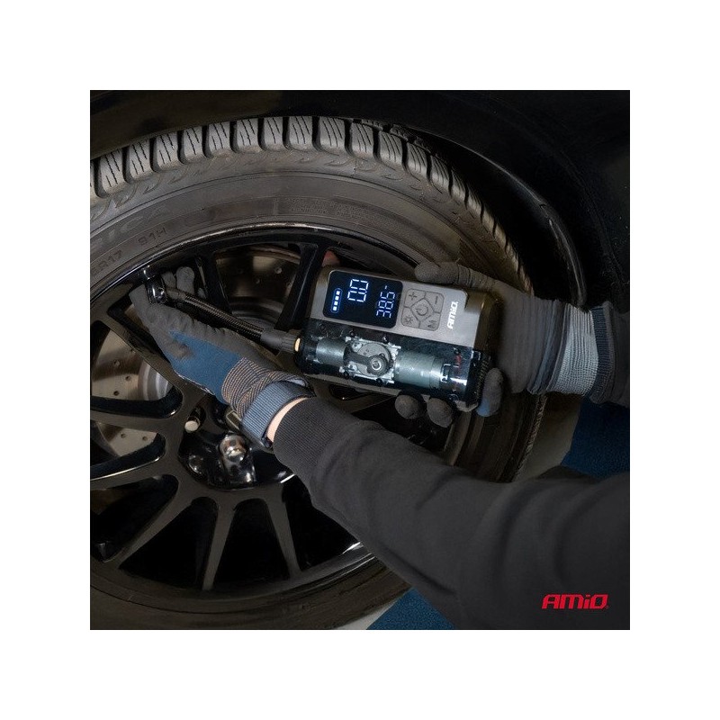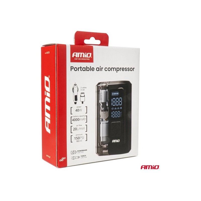 Kompresor samochodowy bezprzewodowy akumulatorowy powerbank LED USB-C 40W AMIO-04378 – Niezbędne urządzenie w każdej podróży
