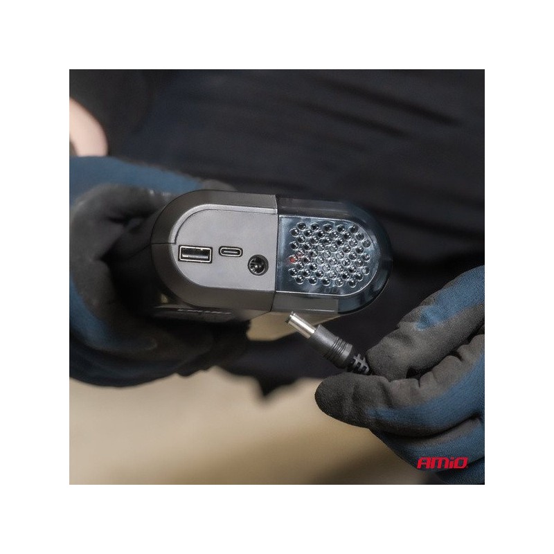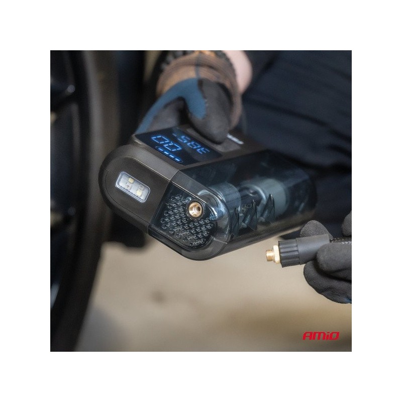 Kompresor samochodowy bezprzewodowy akumulatorowy powerbank LED USB-C 40W AMIO-04378