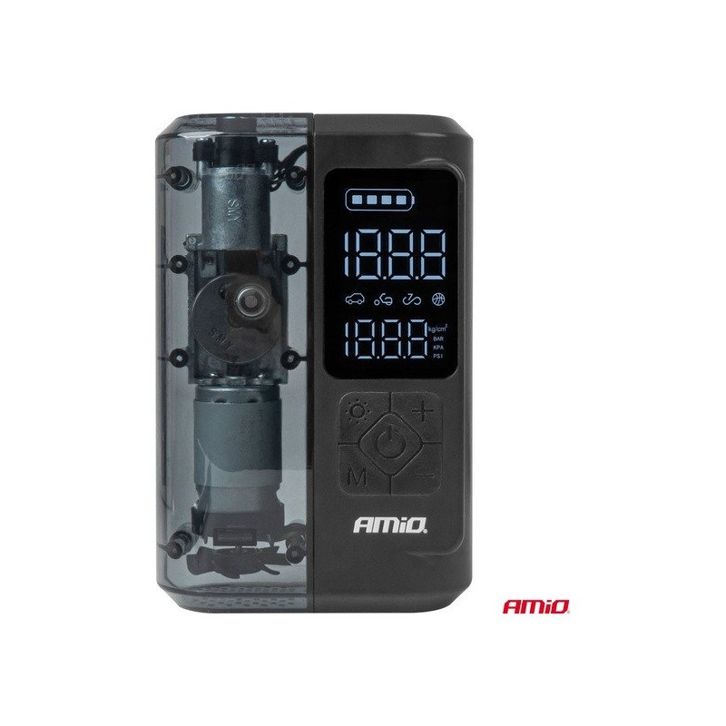 Kompresor AMIO-04378 został wyposażony w praktyczną latarkę LED, która ułatwia korzystanie z urządzenia po zmroku. To idealne rozwiązanie dla osób, które często podróżują w nocy lub potrzebują oświetlenia w trudnych warunkach.
