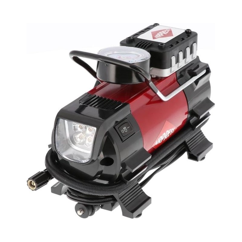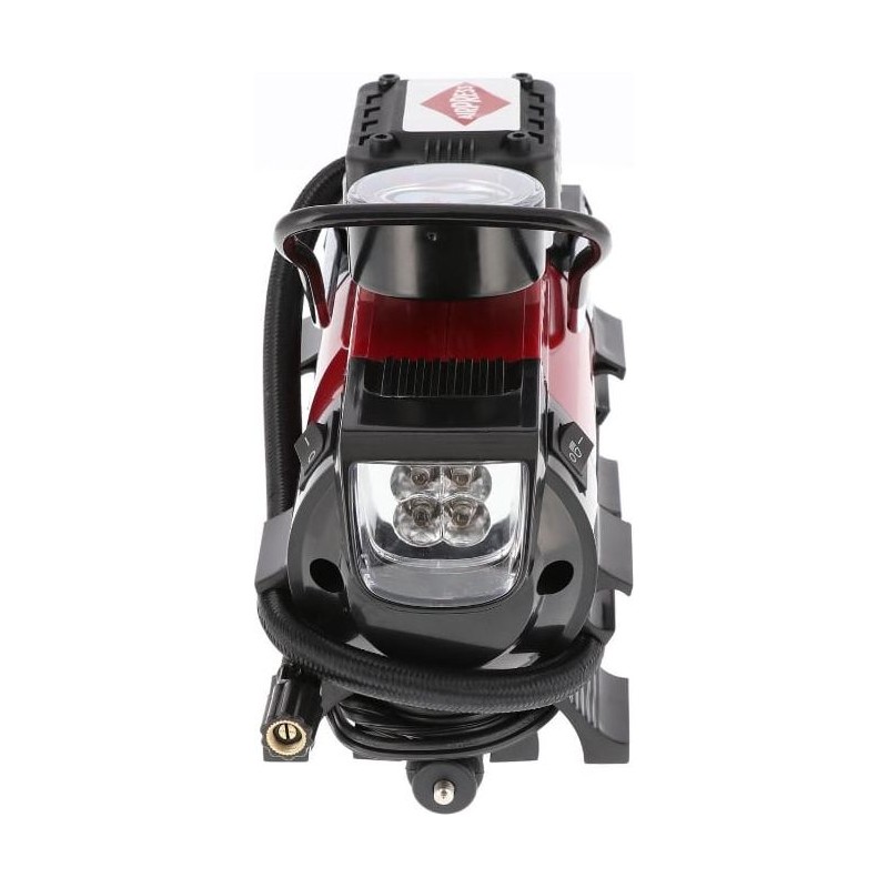 Model 12V30 to bezolejowy i kompaktowy kompresor samochodowy o napięciu zasilania 12V. Idealne urządzenie w każdym aucie jako awaryjne źródło sprężonego powietrza. Dzięki wymiennym końcówkom ma wiele pożytecznych zastosowań (pompowanie kół, pontonów, piłek, balonów itp.). Wyposażony w latarkę, szczególnie pomocny w miejscach gdzie nie ma zasilania sieciowego 230V