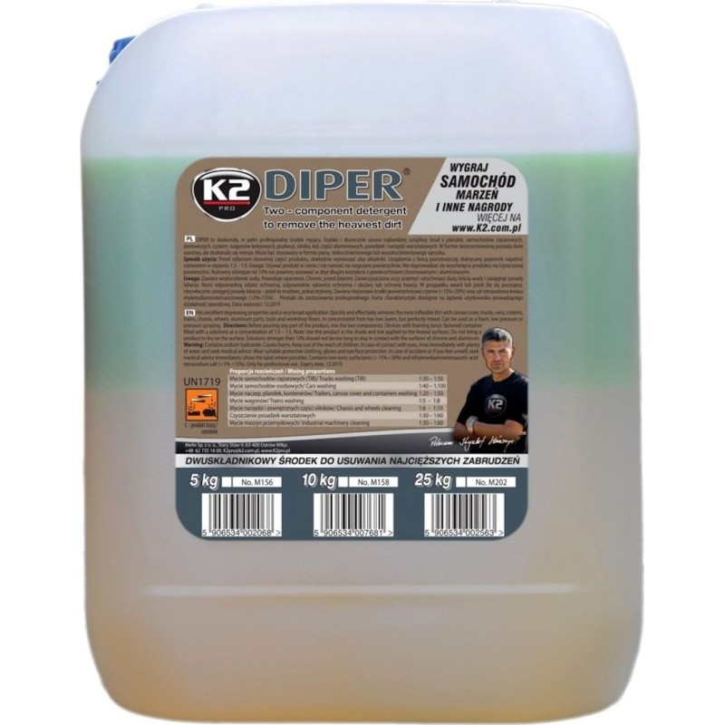 Samochody ciężarowe pokonujące długie trasy narażone są na zabrudzenia, które łatwo można usunąć przy pomocy profesjonalnego preparatu K2 Diper. Środek ten posiada doskonałe właściwości odtłuszczające i może być stosowany w formie piany lub oprysku wysoko lub niskociśnieniowego. W formie skoncentrowanej posiada dwie warstwy, ale doskonale się miesza.Nie zawiera fosforanów.