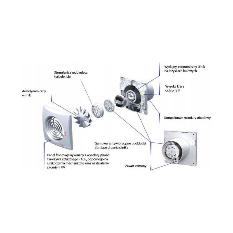 - Innowacyjne wentylatory wywiewne, w nowoczesnej stylistyce, zapewniające wysoki poziom komfortu, przeznaczone do wentylacji pomieszczeń mieszkalnych (łazienek, kuchni, węzłów sanitarnych itp.).