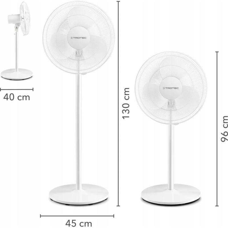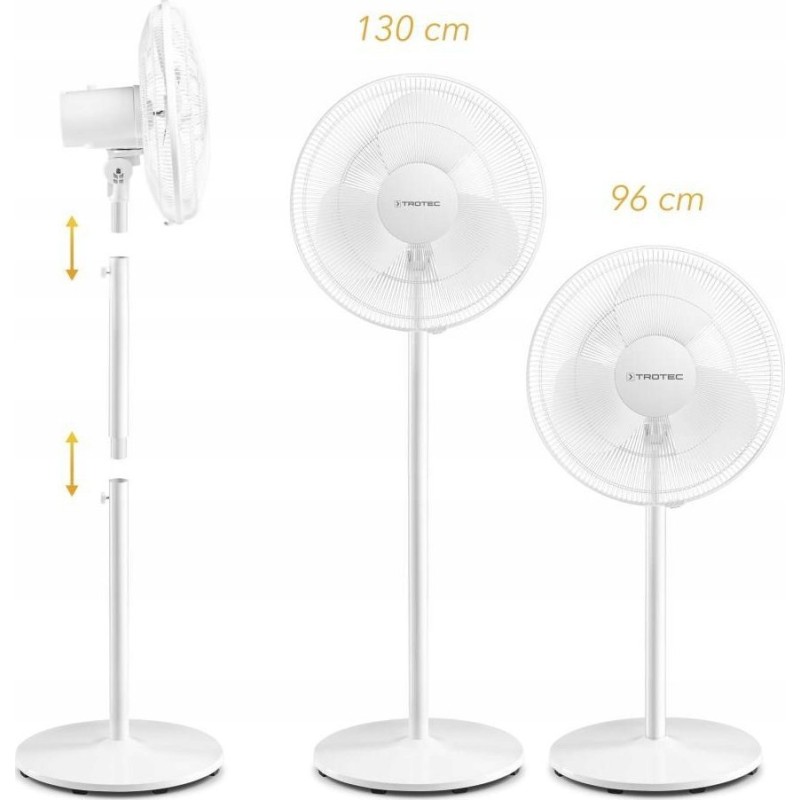 Podczas upalnych letnich dni wentylator stojący TVE 23 S dostarczy świeżego powiewu w elegancki sposób. Posiadający moc 50 watów i szerokość łopatek 40 cm, zapewnia potężną siłę do poruszenia ciepłego i dusznego powietrza w pomieszczeniu.