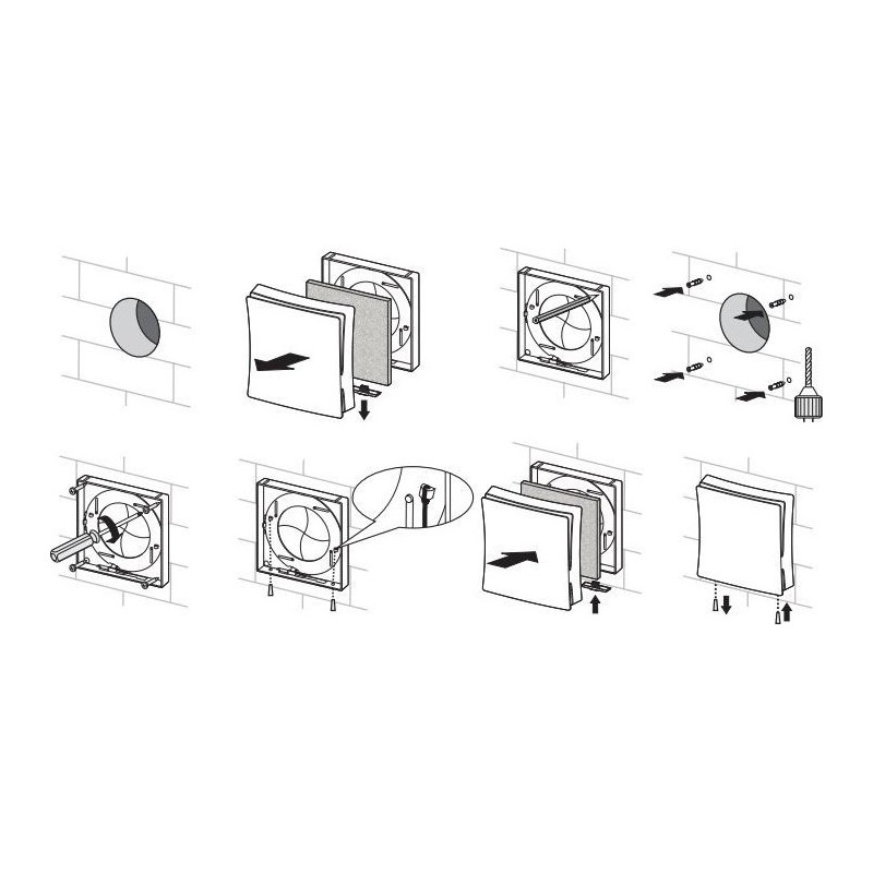 - Kaseta zawiera wbudowany filtr klasy G3, dodatkowo tłumiący hałas z zewnątrz.