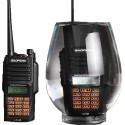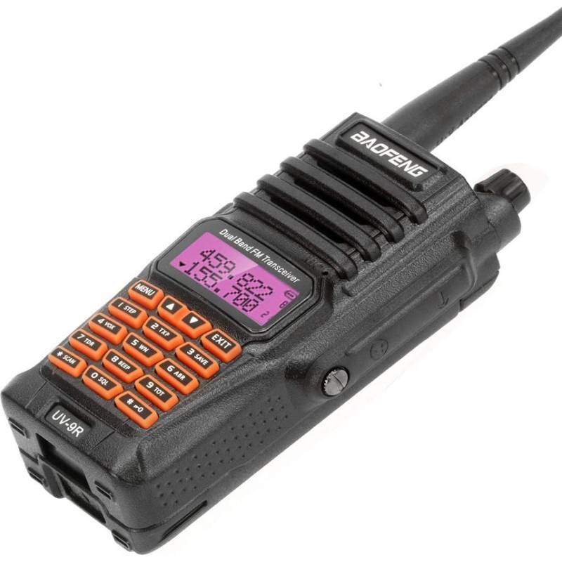 Baofeng UV-9R to kurzo- i wodoodporny (IP57) dwupasmowy radiotelefon (duobander) o mocy 5 watów z podwójnym wyświetlaczem, klawiaturą DTMF i funkcją Dual Watch. Duobander wyposażono w podwójny wyświetlacz, selektywne wywołanie, Dual Watch, latarkę LED oraz wiele innych funkcji. Wbudowane radio FM pozwala w przerwach rozmowy słuchać ulubionej stacji, automatycznie przełączając się na wybrany kanał po odebraniu sygnału od drugiej stacji. Podstawa zasilająca pozwala ładować tak radiotelefon jak i samą baterię.