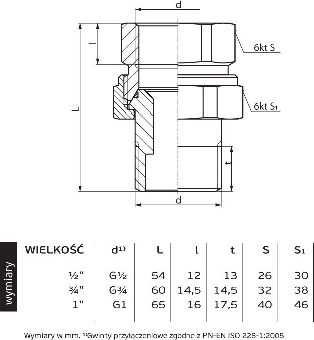 Perfexim Śrubunek mosiężny prosty 1" z oringiem (07-000-0250-000)