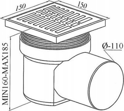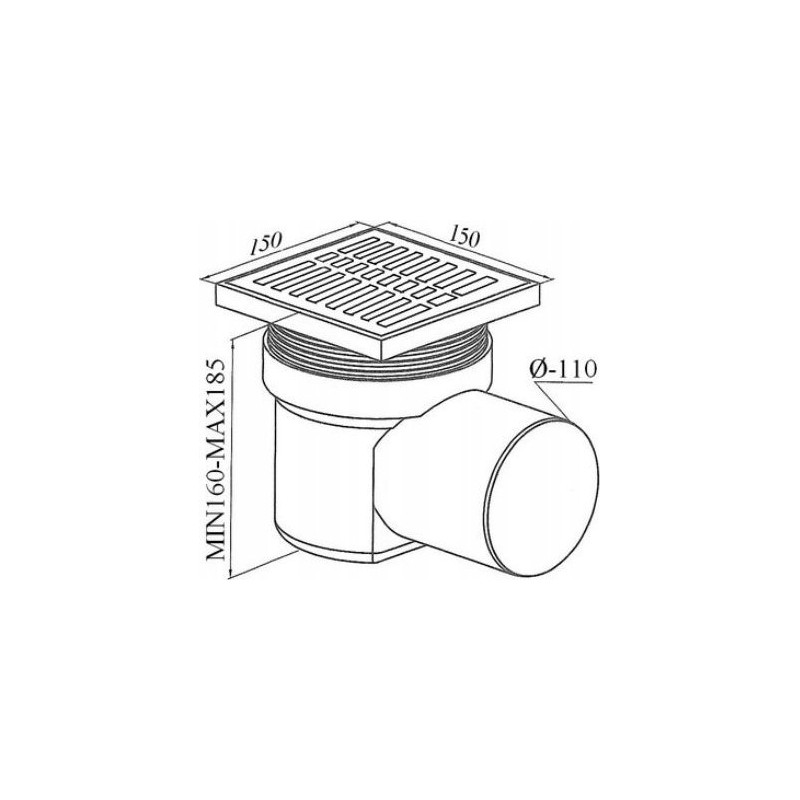 AKCES Kratka ścieków boczna 150 x 150 DN 110 szara nierdzewna 11956