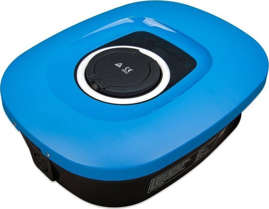 - Urządzenie jest technicznie identyczne ze Stacją Ładowania EV, jednak z nowym, nowoczesnym designem, dostępnym w 3 wersjach kolorystycznych i bez wbudowanego ekranu LCD. Początkowa konfiguracja, konfiguracja i monitorowanie odbywa się za pośrednictwem VictronConnect za pośrednictwem Bluetooth i/lub zintegrowanego interfejsu internetowego za pośrednictwem punktu dostępu Wi-Fi lub sieci Wi-Fi LAN.