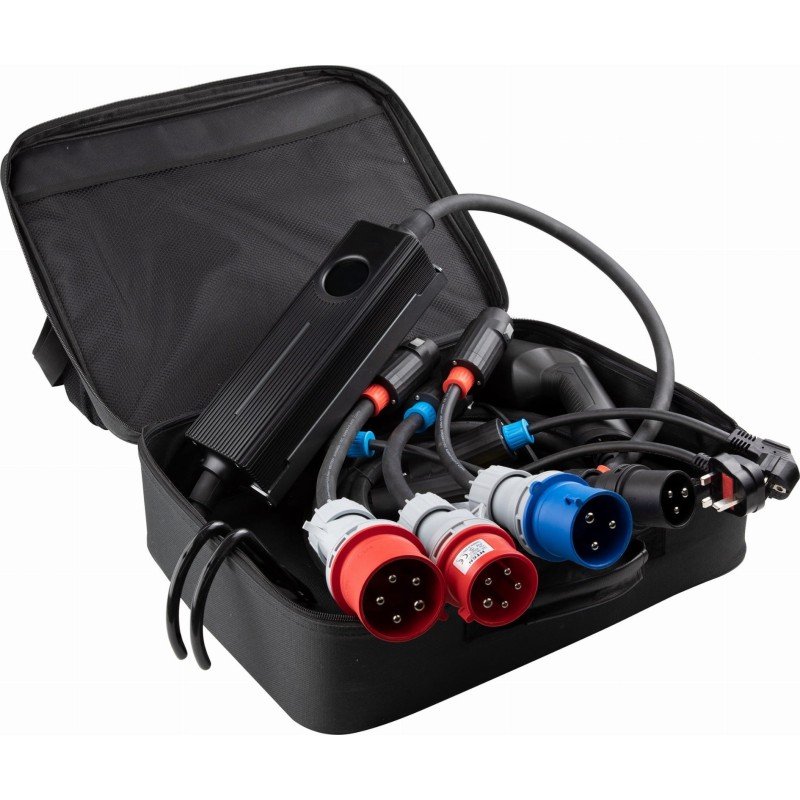 Zapewnia korzyści płynące z ładowania wszędzie tam, gdzie dostępne jest zasilanie prądem przemiennym i trójfazowym. Dzięki dołączonym adapterom możliwe jest korzystanie z urządzenia w domu, na wyjeździe wakacyjnym lub kempingu.