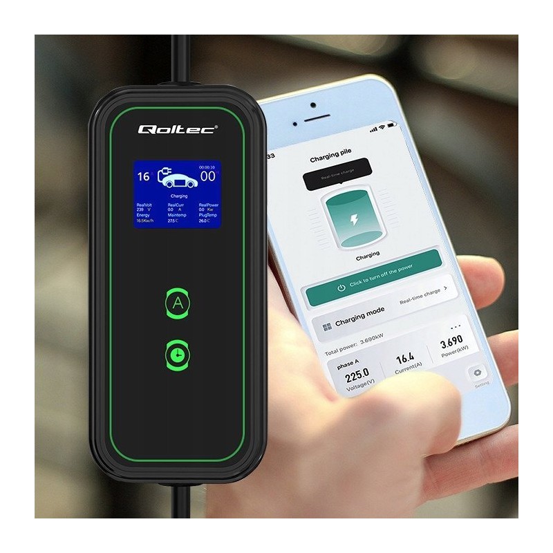 Ładowarka posiada złącze typu 2, które jest standardem Unii Europejskiej i umożliwia ładowanie samochodów elektrycznych wyposażonych w odpowiednie gniazdo ładowania. Złącze typu 2 posiada 7 styków, z których 3 lub 5 jest przeznaczonych do ładowania, a 2 do komunikacji między stacją ładowania a samochodem. Jest kompatybilne z większością samochodów elektrycznych dostępnych w Europie. Ładowarka Qoltec obsługuje cztery opcje prądu ładowania: 16A, 20A, 24A i 32A. Złącze typu 2 jest przeznaczone do pojazdów elektrycznych o mocy ładowania większej niż 3kW.