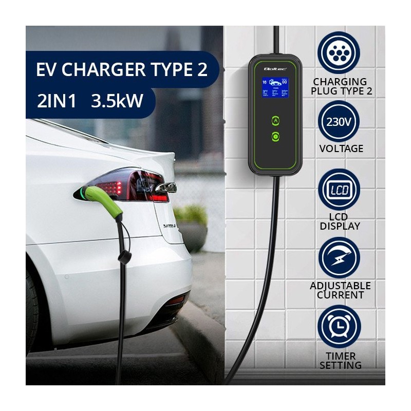 Ładowarka Qoltec Mobilna do samochodów EV 2w1 Typ 2, 3,5kW, 230V