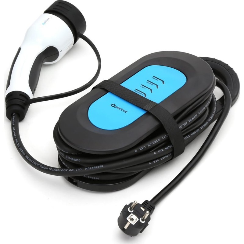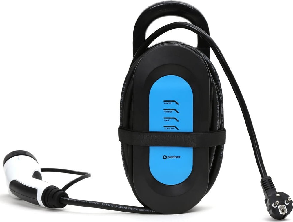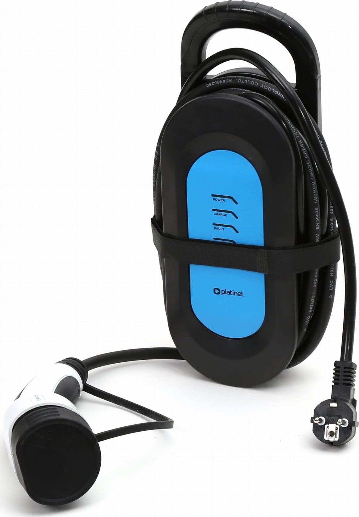 Przenośna ładowarka do samochodów elektrycznych Platinet Model Z z wygodną wtyczką Schuko.