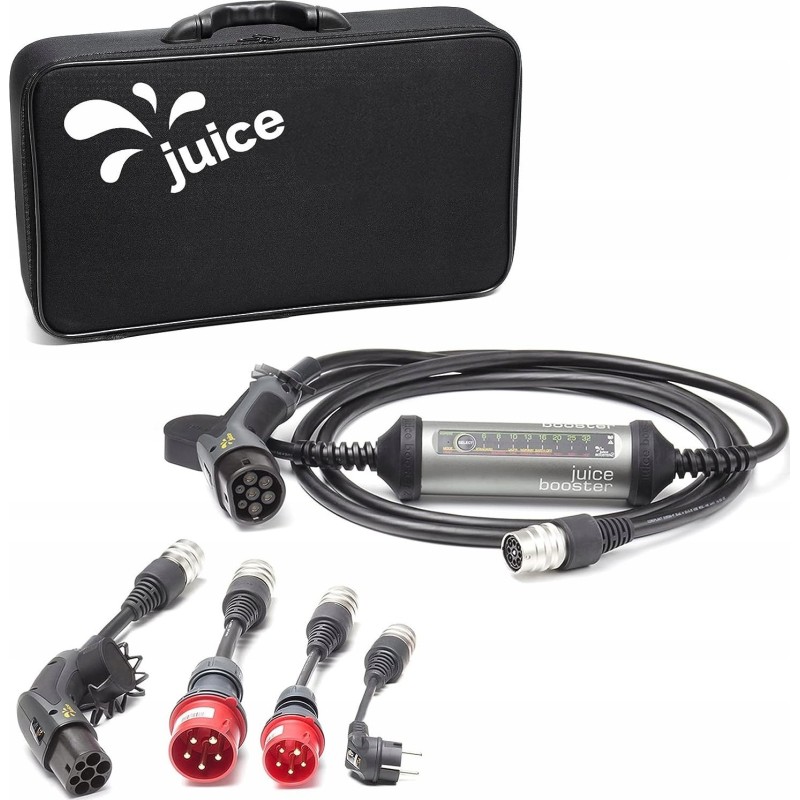 - Wydajność: ładowanie maks. trójfazowy, 11 lub 22 kW, do 32 A. Można ładować tam, gdzie jest prąd. Nie ma już obaw o zasięg. Dzięki JUICE BOOSTER 2 można ładować maksymalnie szybko, niezależnie od przyłącza prądu, zarówno w kraju, jak i za granicą. Rozwiązania adapterowe dostępne opcjonalnie w całej Europie!