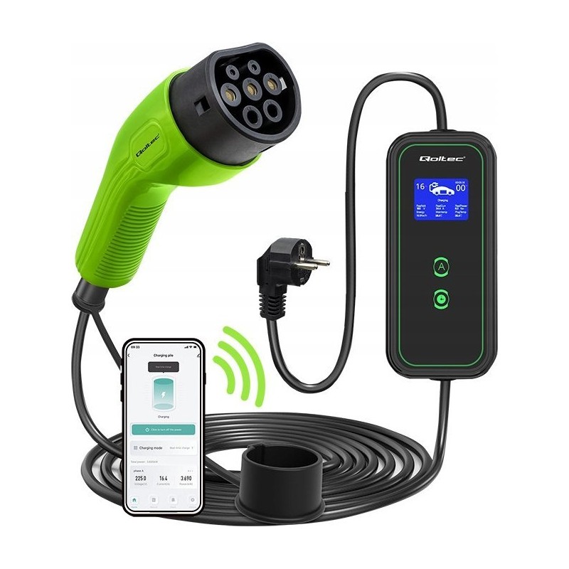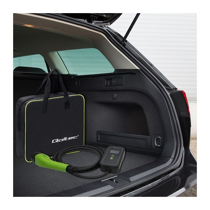 Qoltec Przenośna ładowarka do samochodu elektrycznego EV z regulacją 2w1 Typ2 | 3.5kW | 230V | Wi-fi | LCD | Łatwa w przenoszeniu | Wallbox | 5m