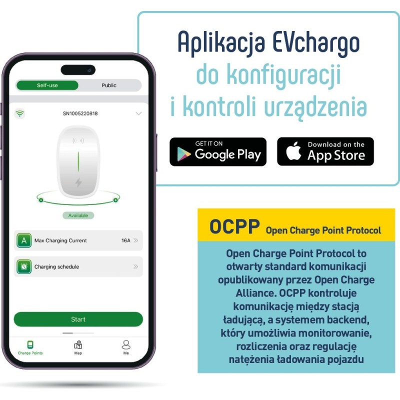 - Posiada długi 7-metrowy kabel ładowania zakończony złączem TYPE-2.
