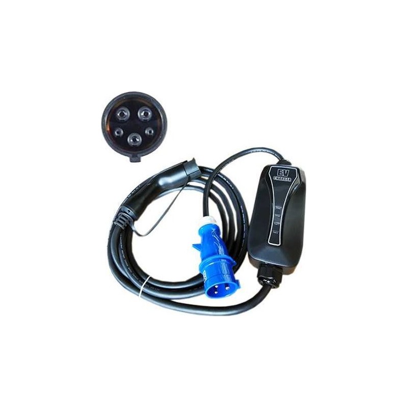 Przenośna ładowarka do samochodów elektrycznych, Typ 1-CEE niebieska, 6-32A, 7,2kW, jednofazowa, 5m.