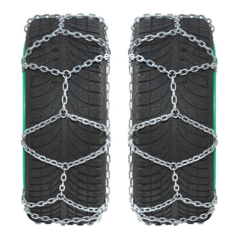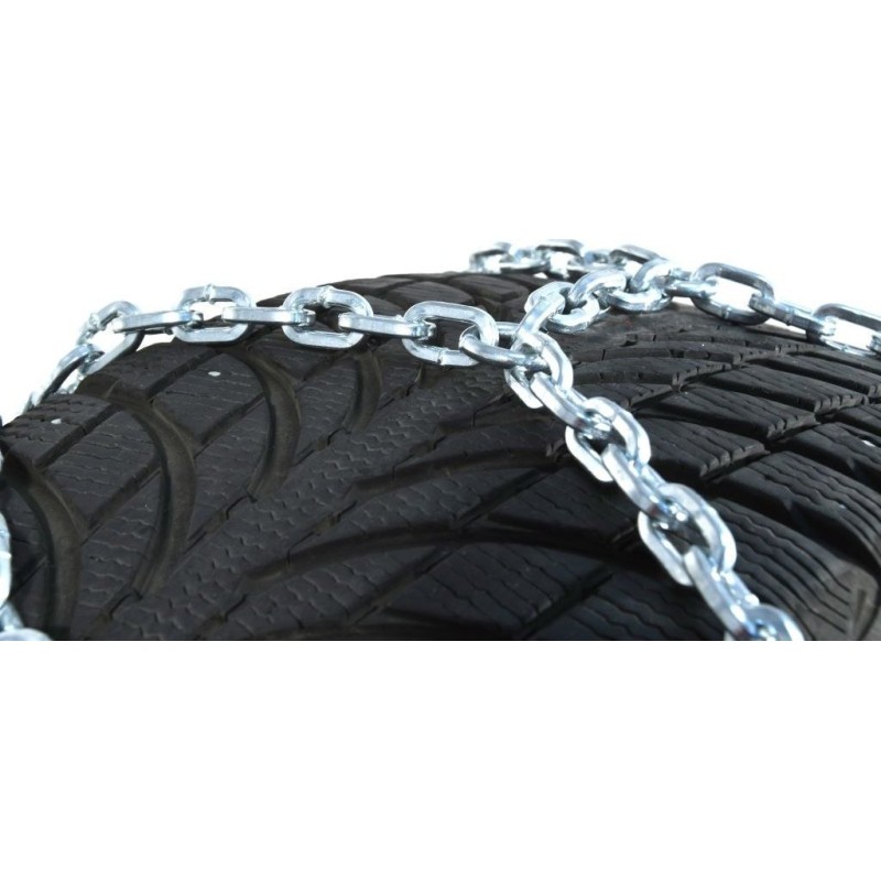 Kwadratowe ogniwa 27 x 16 mm są przystosowane do obracania się łańcucha, co znacznie zwiększa przyczepność koła. Grubość materiału 4,5 mm zapewnia dużą wytrzymałość, trwałość i długą żywotność. Siatka łańcuchowa ułożona jest w specjalnym kształcie litery „X", gwarantującym cichą i wygodną jazdę po zaśnieżonych i polnych drogach.