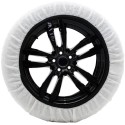 Łańcuchy te są wykonane z wysokiej jakości materiałów tekstylnych, co sprawia, że są lżejsze i bardziej praktyczne w porównaniu do tradycyjnych łańcuchów. Dodatkowo, produkt spełnia obowiązujące normy bezpieczeństwa, co zapewnia ich niezawodność w trudnych warunkach.