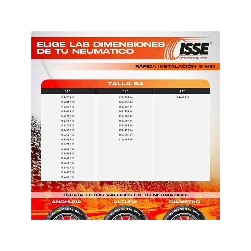 Łańcuchy śniegowe tekstylne isse classic rozmiar 54 en16662-1-2020 onorm 5121- 2021 2 szt.